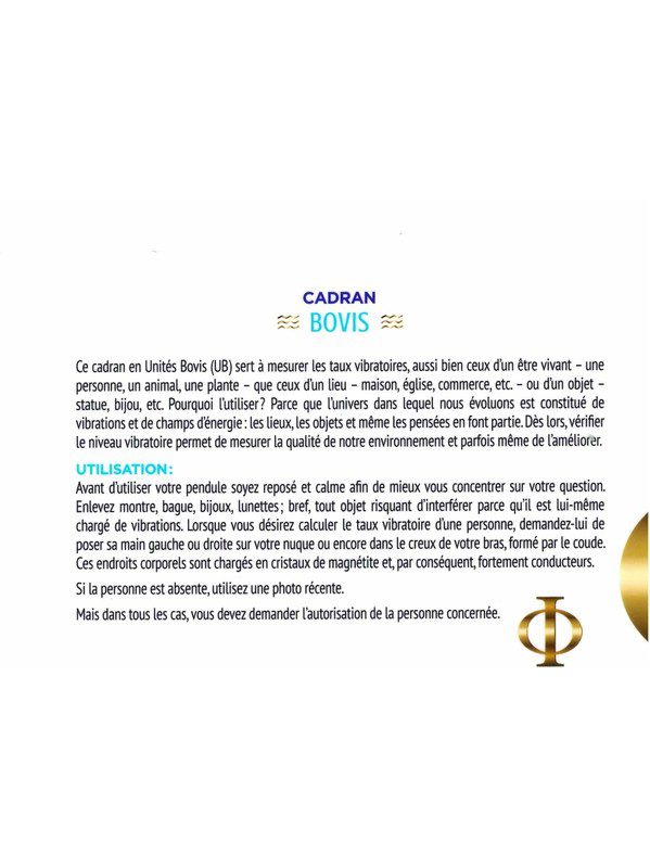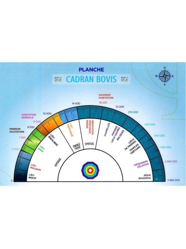 Cadran Bovis gradué de 0 à 3 960 000 Unités Bovis (UB), pour estimer l’énergie vibratoire d’un lieu, d’un aliment, d’un animal ou d’un être humain.